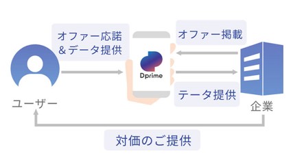 アプリに登録したデータを企業等に渡すことで、個人ユーザーは様々な特典が受けられるだけでなく、自身のデータを通じて、社会課題解決に向けた商品・取組等を応援することができるサービスです。