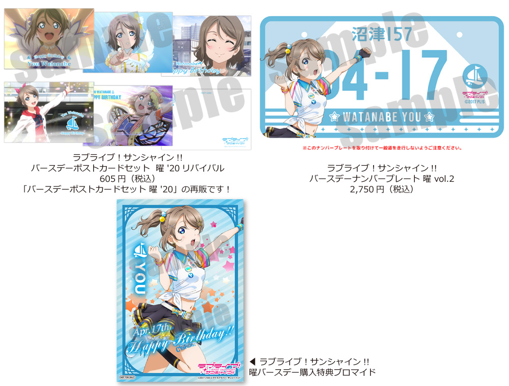 「バースデーナンバープレート 曜 vol.2」または「バースデーポストカードセット 曜 '20リバイバル」を含む1注文につき、予約販売期間に限り、渡辺曜バースデーブロマイドを1枚お付けいたします。