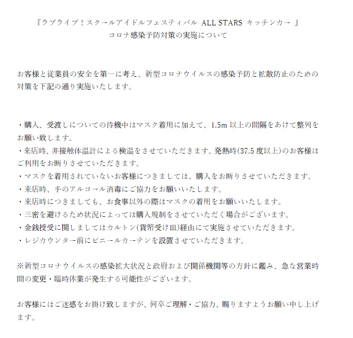 ラブライブ!スクールアイドルフェスティバル ALL STARS キッチンカー at ODAIBA デックス東京ビーチtwitterアカウント:https://twitter.com/all_odaiba
