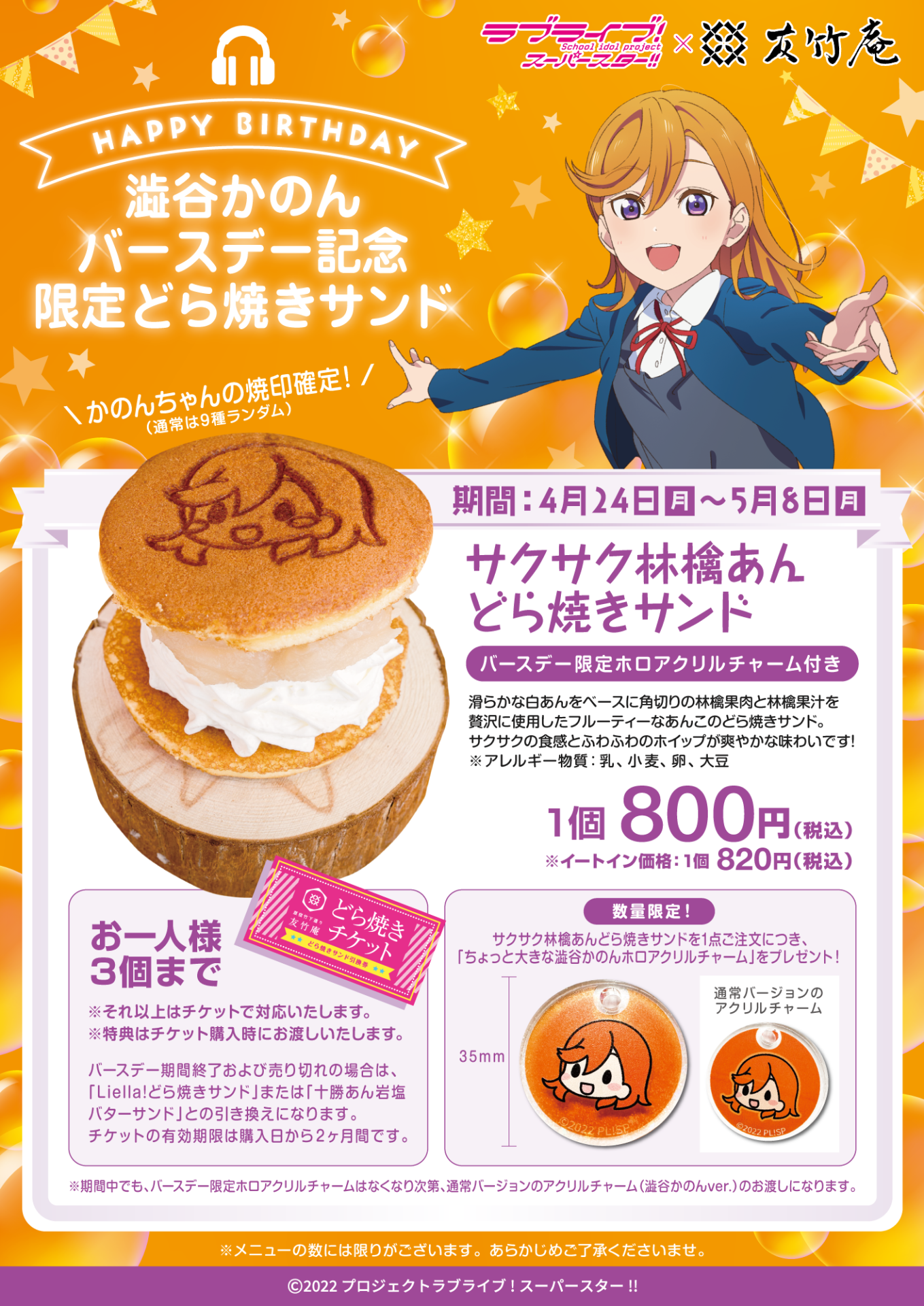 原宿竹下通り友竹庵より、澁谷かのん バースデー記念メニュー発売のお知らせ!